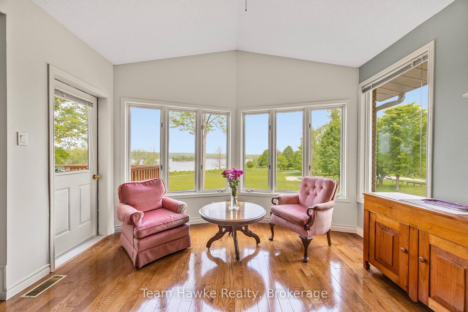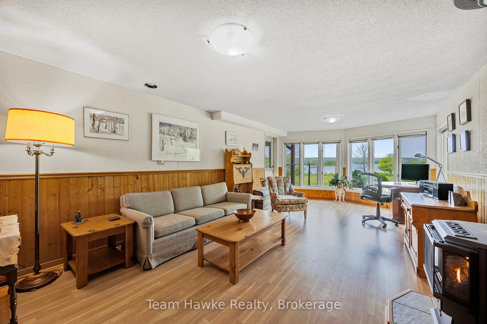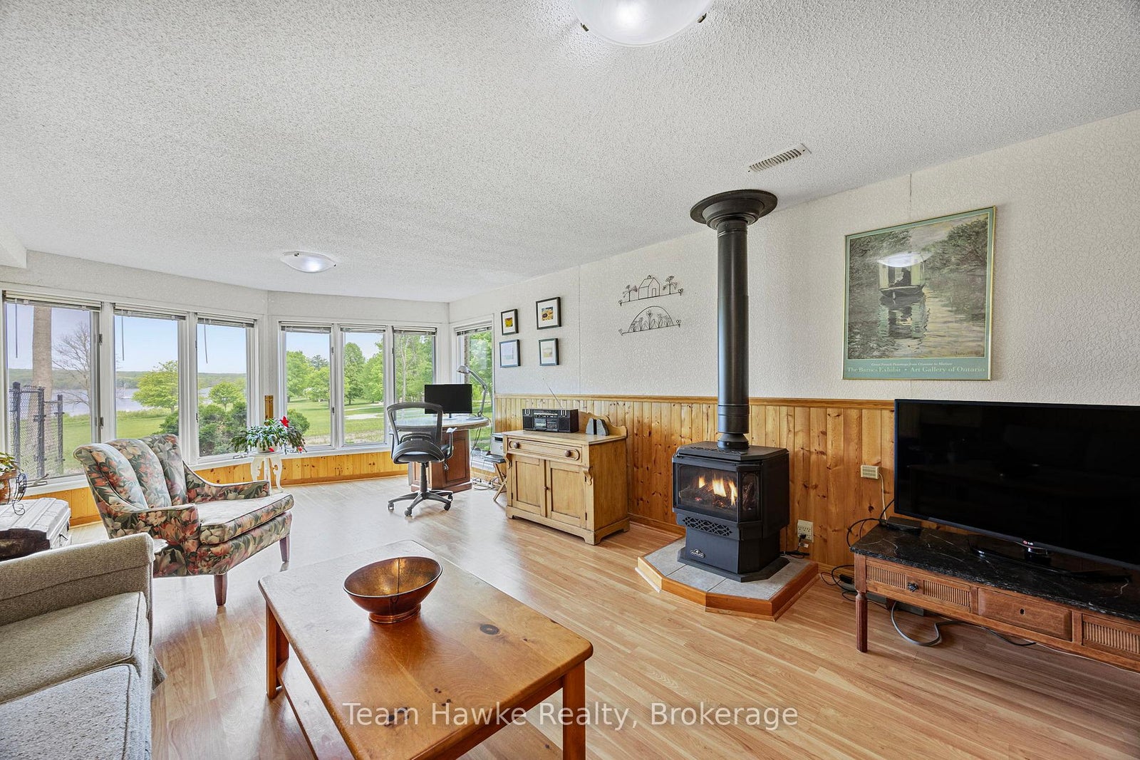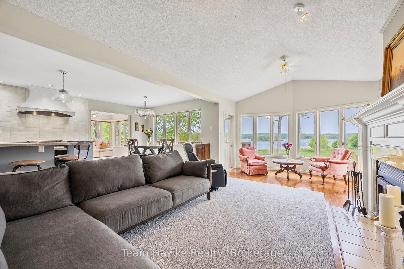 Welcome to your dream retreat by the bay, where panoramic water views, serene sunsets, and refined living come together in one of Penetang's most sought-after neighbourhoods. This beautifully maintained 4-bedroom, 3-bathroom all-brick bungalow offers an ideal blend of comfort, elegance, and functionality, perfectly positioned on a quiet, low-traffic street. Step inside to a bright, open-concept main floor featuring vaulted ceilings, a cozy wood-burning fireplace, formal dining area, sunroom, and a stunning new Lindsay Schultz kitchen ideal for entertaining or simply soaking in the views. The main floor primary suite is a private escape with its own en-suite and walk-in closet. Downstairs, the fully finished lower level boasts a spacious family room with a new Napoleon gas fireplace, additional bedrooms, an office, and two walkouts to the beautifully landscaped backyard. Thoughtful updates include new shingles (2025), a new gas hot water heater (2025), updated flooring, and modern light fixtures throughout. Enjoy the outdoors with a wrap-around deck, covered lower patio, and direct access to open green space and the bay, perfect for launching your kayak, paddleboard, or simply enjoying a peaceful walk through the park. Just minutes to town, marinas, shops, restaurants, trails, and Discovery Harbour. This is a rare opportunity to embrace waterfront-adjacent living in a truly exceptional location.