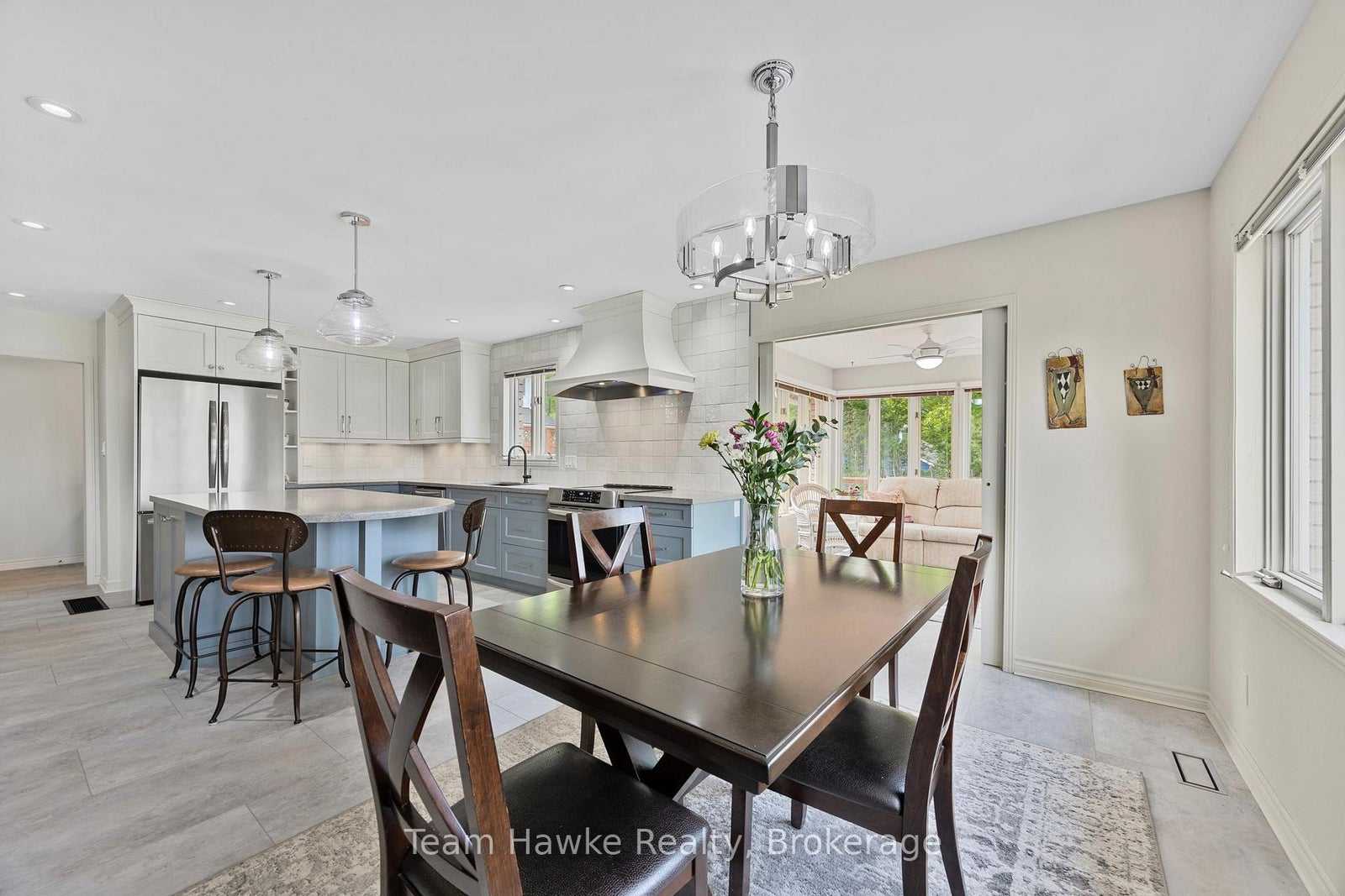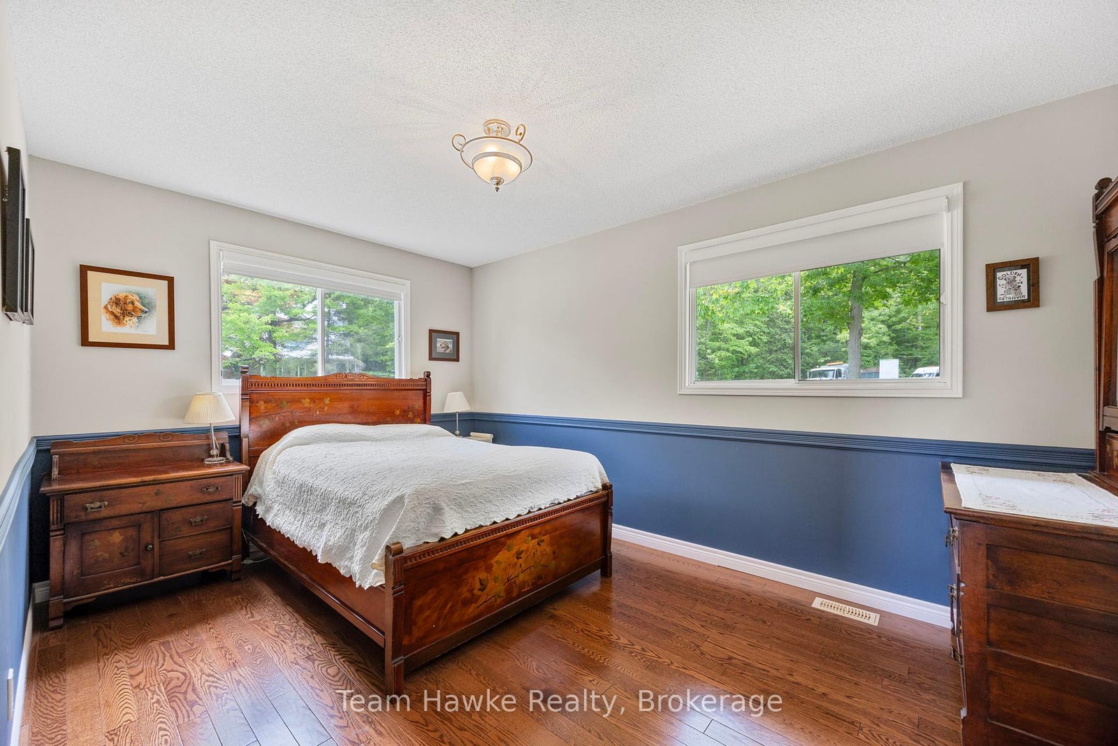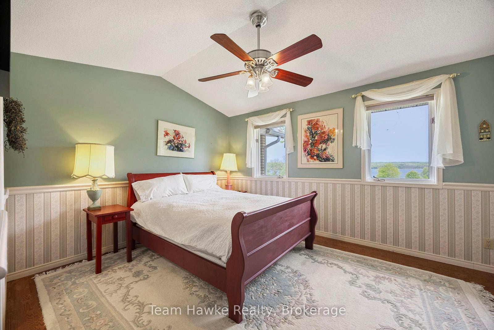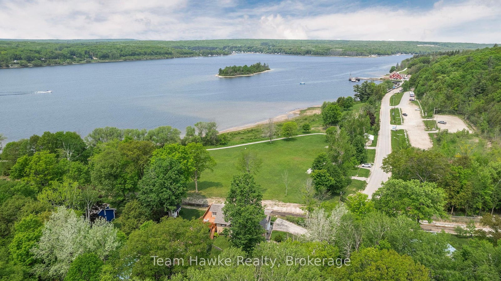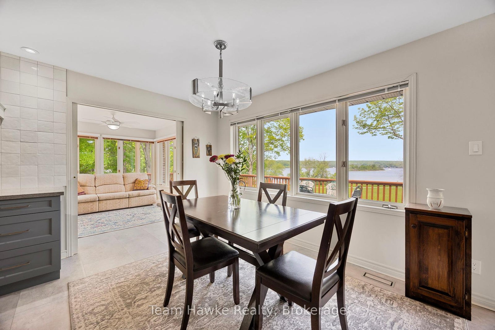 Welcome to your dream retreat by the bay, where panoramic water views, serene sunsets, and refined living come together in one of Penetang's most sought-after neighbourhoods. This beautifully maintained 4-bedroom, 3-bathroom all-brick bungalow offers an ideal blend of comfort, elegance, and functionality, perfectly positioned on a quiet, low-traffic street. Step inside to a bright, open-concept main floor featuring vaulted ceilings, a cozy wood-burning fireplace, formal dining area, sunroom, and a stunning new Lindsay Schultz kitchen ideal for entertaining or simply soaking in the views. The main floor primary suite is a private escape with its own en-suite and walk-in closet. Downstairs, the fully finished lower level boasts a spacious family room with a new Napoleon gas fireplace, additional bedrooms, an office, and two walkouts to the beautifully landscaped backyard. Thoughtful updates include new shingles (2025), a new gas hot water heater (2025), updated flooring, and modern light fixtures throughout. Enjoy the outdoors with a wrap-around deck, covered lower patio, and direct access to open green space and the bay, perfect for launching your kayak, paddleboard, or simply enjoying a peaceful walk through the park. Just minutes to town, marinas, shops, restaurants, trails, and Discovery Harbour. This is a rare opportunity to embrace waterfront-adjacent living in a truly exceptional location.