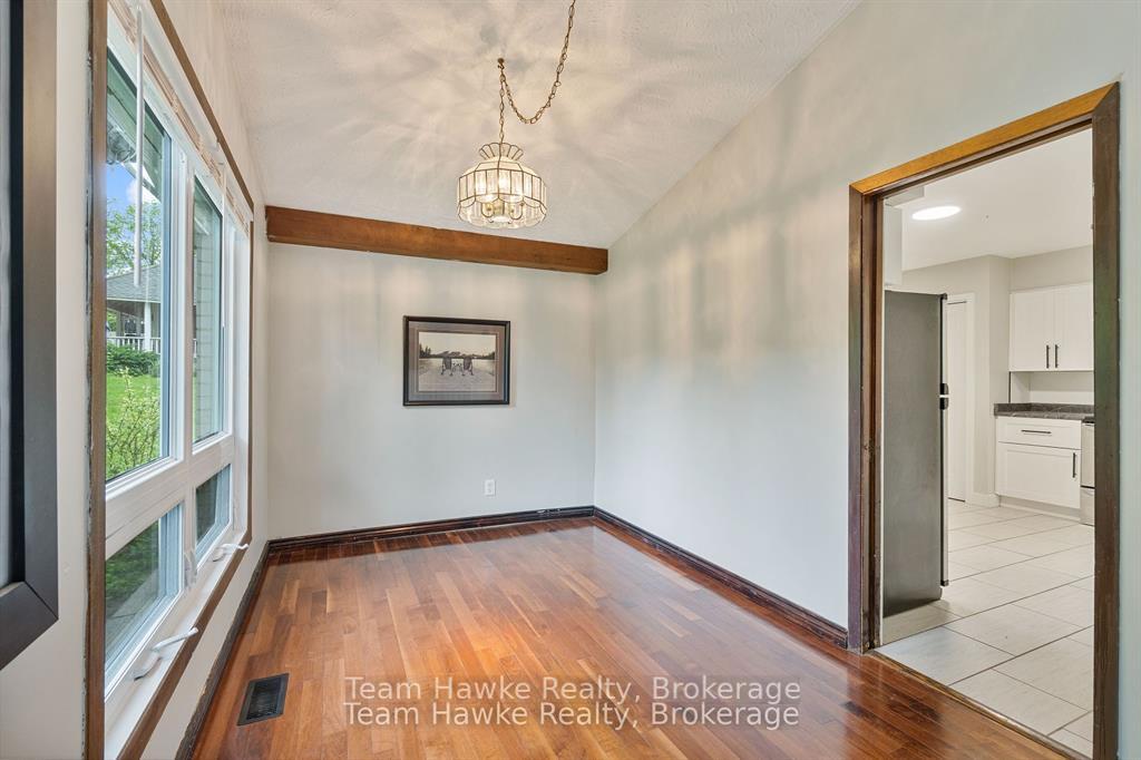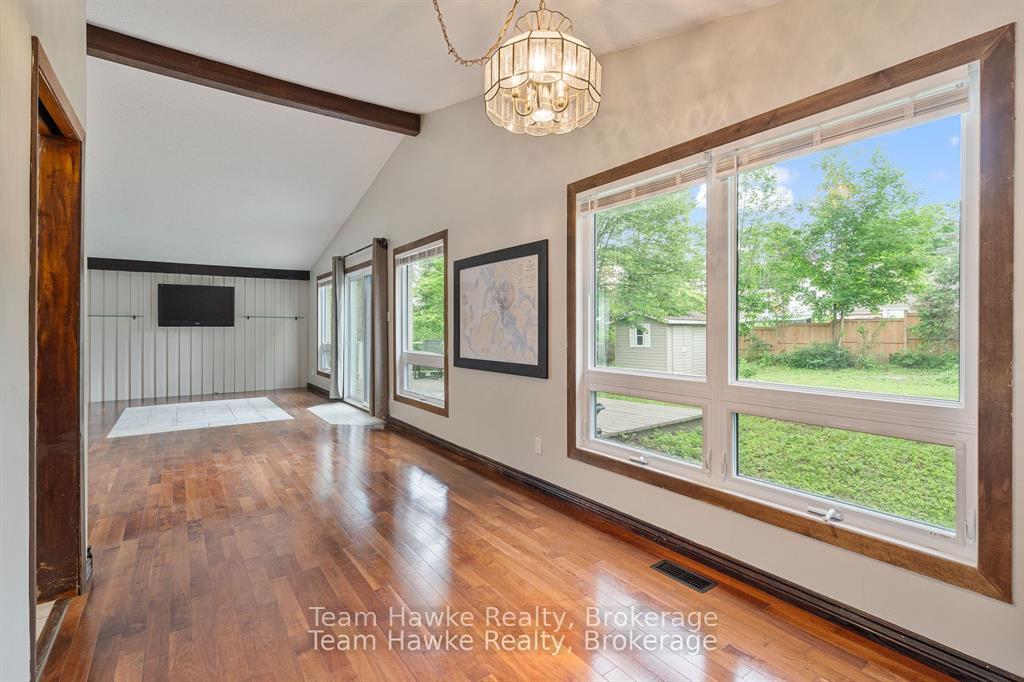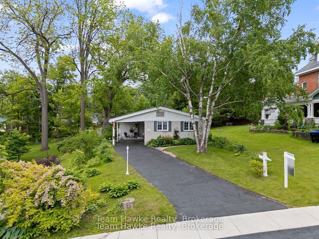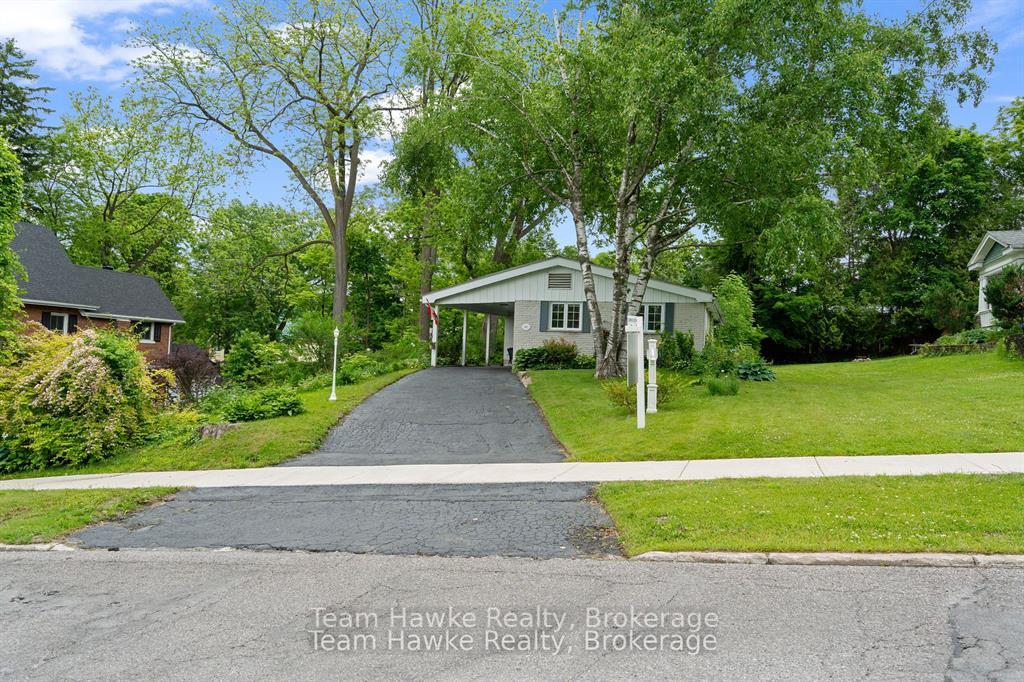 This all-brick bungalow blends charm, comfort, and a great central location. Set on a beautifully landscaped 50 x 150 ft lot with perennial gardens and excellent curb appeal, this 3-bedroom, 1-bath home features a recently renovated kitchen, updated bathroom, and a spacious living and dining area with cathedral ceilings and a walkout to the large back deck surrounded by natural privacy. The partial basement is ready for your finishing touches, offering added potential. Outside, you'll find plenty of parking and a convenient carport. Located just minutes from schools, shopping, downtown, and Midlands scenic harbourfront. Whether you're starting out, downsizing, or investing, this well-maintained home is full of potential and ready to welcome its next chapter