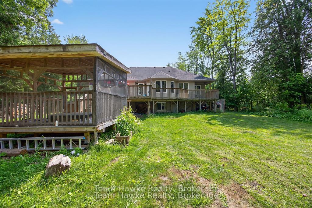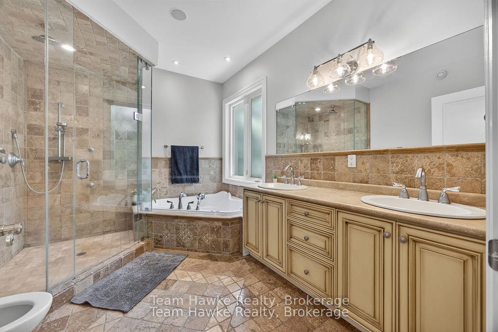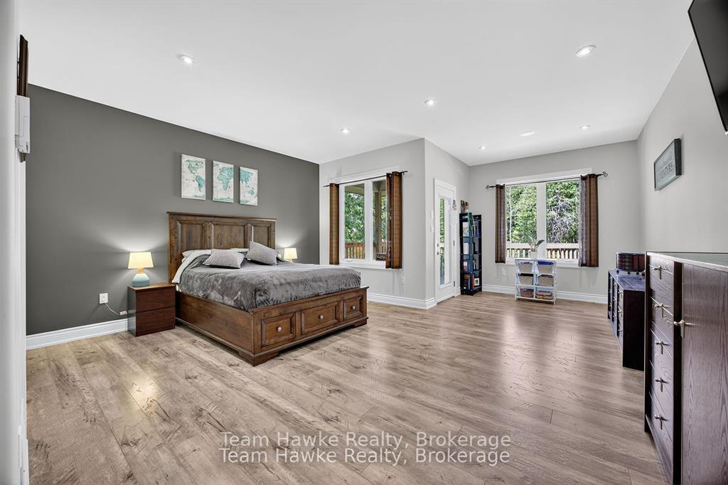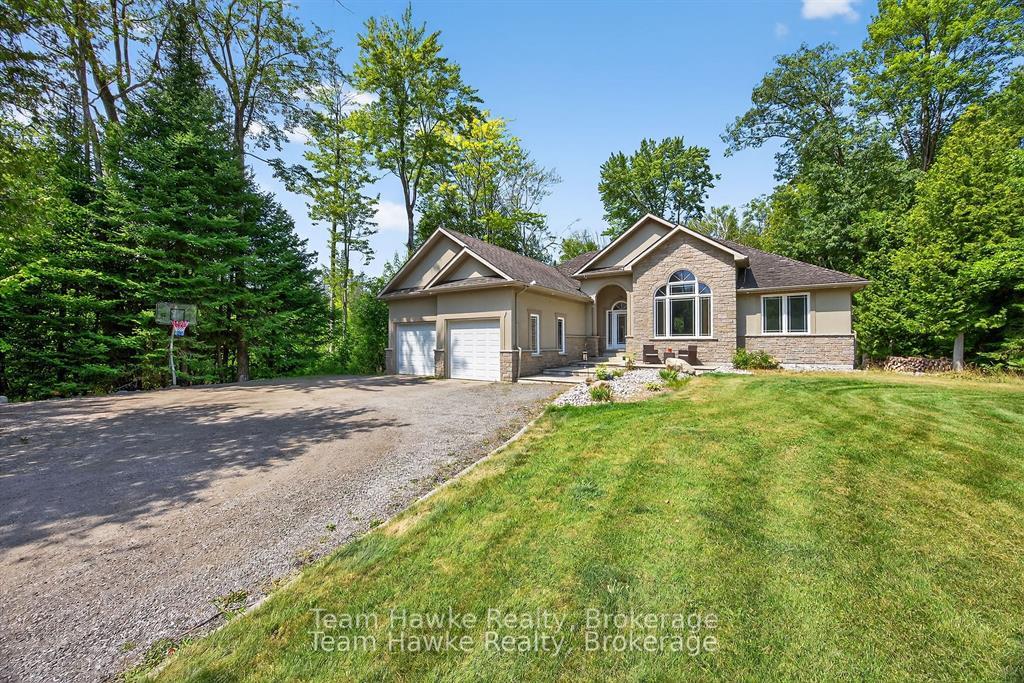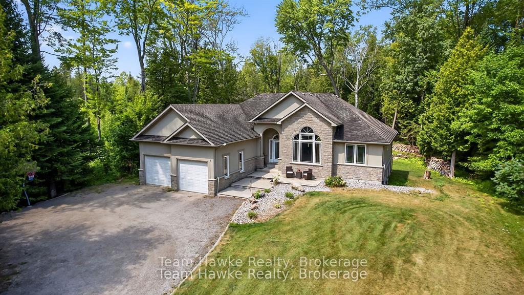 Located on a quiet in popular Tiny Township, this spacious ranch bungalow offers the perfect blend of comfort, privacy, and beachside living. Just a short walk to several beautiful sandy beaches along the shores of Georgian Bay, yet only 20 minutes to Barrie, minutes to Wasaga & 20 minutes to Midland. Set on a large, private lot with mature trees and set well back from the road, this home features a bright and open layout. The main floor features soaring ceilings & includes three generously sized bedrooms, including a spacious primary suite with a 5-piece ensuite and walk-in closet. The fully finished lower level is ideal for the whole family, offering two more bedrooms, a full bathroom, a large rec room filled with natural light, & sauna. Other notable features include in-floor radiant heat in the basement & half the garage; EV charger; generac w/ automatic switchover; furnace 2024. Don't miss out on this opportunity.