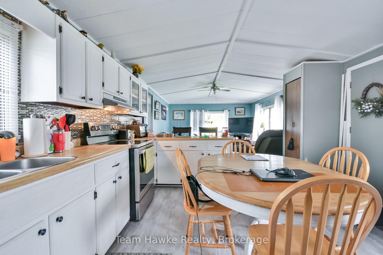 A great opportunity to downsize your home and move into this clean and comfortable mobile home in Midland. Located in Smith's Camp, a community on the shores of Little Lake, this two bedroom home has an open concept layout with updated flooring throughout. Everything is on one level. Easy access to walk the trails of Little Lake Park, access to public transportation at the entrance, and a walking trail to Walmart. This location features plenty of outdoor living space as well, plus two storage sheds. Gas heat. Don't miss out.
