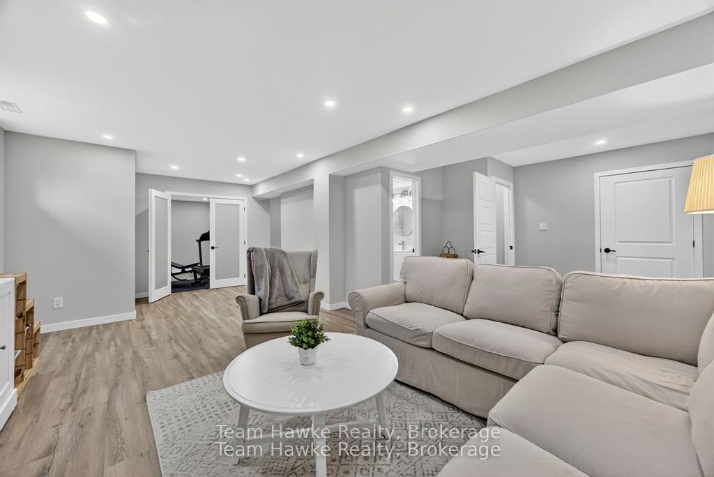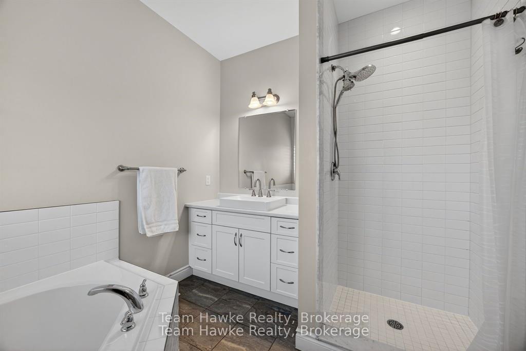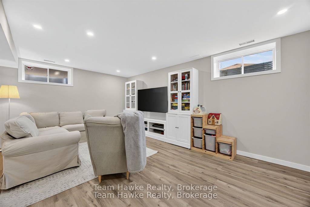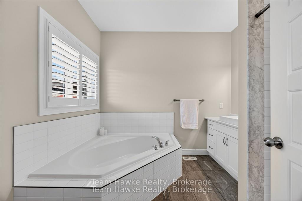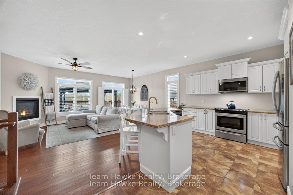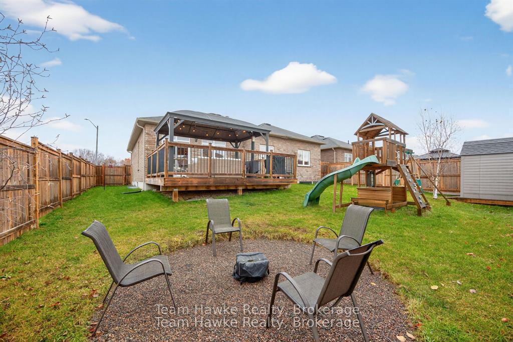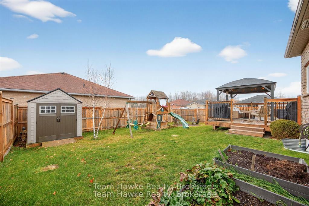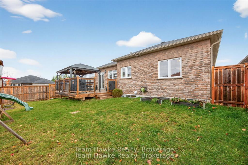 Pride of ownership shines throughout this 2,800 sqft finished up and down bungalow, in desirable Victoria Harbour. Offering 5 bedrooms and 3 full baths, this home sits on a fenced corner lot and features an oversized deck. The main floor includes 3 bedrooms, including a primary suite complete with a private ensuite featuring a soaker tub and separate shower. 9 ft ceilings, gas fireplace in the great room, spacious kitchen with a large island. The fully finished lower level adds exceptional versatility, offering 2 additional bedrooms, a den, a 3-piece bath, generous storage space, and a large recreation area. Additional features include gas heating with air conditioning and a private setting within the subdivision. Don't miss out!