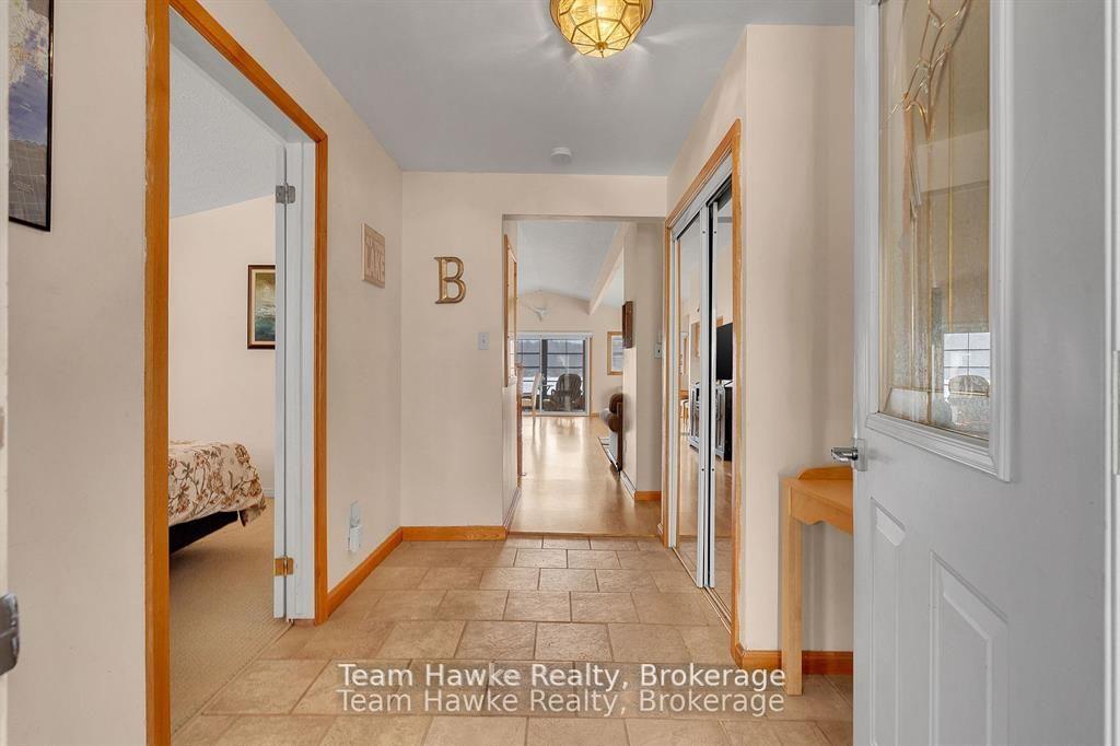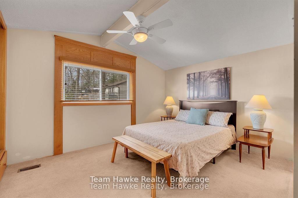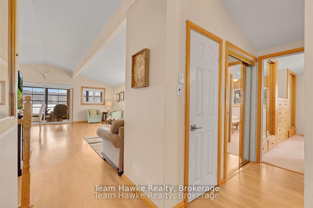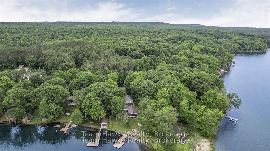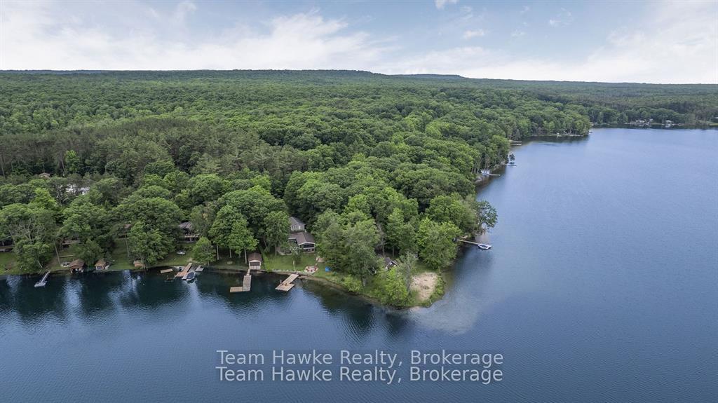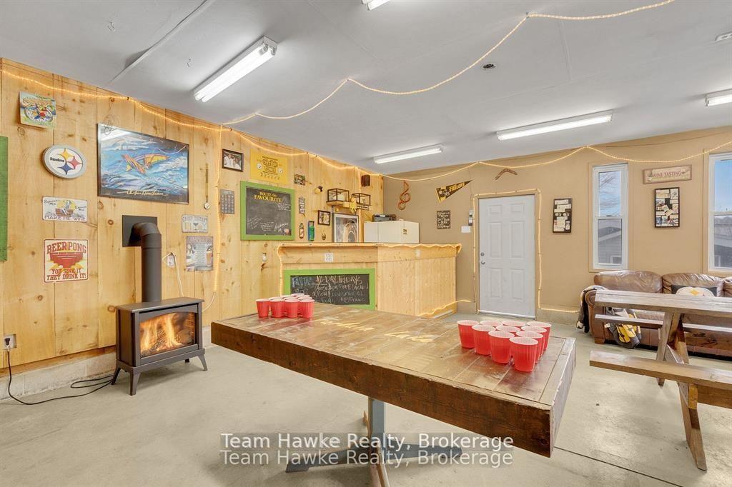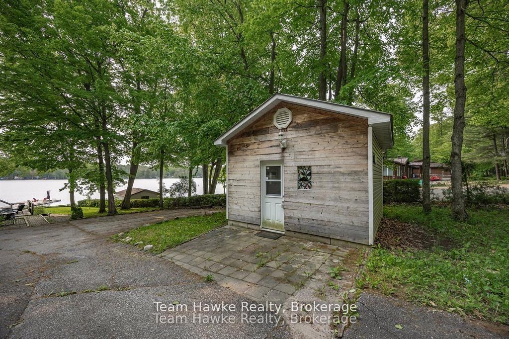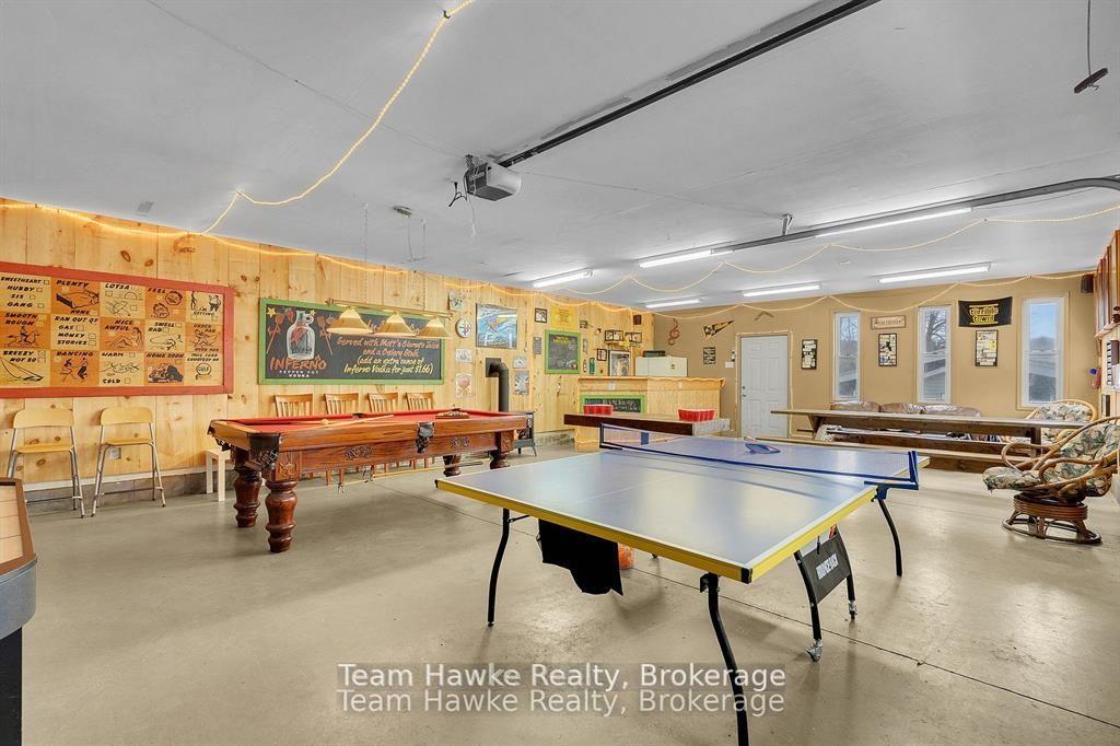 Escape the city and embrace lakeside living! Located 15 minutes from Penetanguishene and under 2 hours from the GTA, this exceptional four-season lakefront home is nestled on a beautifully landscaped 3/4 acre lot with hundreds of feet of private shoreline. The calm, swimmable waters and shallow sandy entry create warmer temperatures that are ideal for families; a highly sought-after feature compared to larger, busier lakes. Offering just under 2,400 square feet of finished living space, this spacious and thoughtfully designed home features 3 bedrooms and 3 bathrooms, perfectly suited for full-time living or a luxury recreational retreat. The main-floor primary suite includes a private ensuite and custom built-in wardrobes, while the open-concept living and dining areas flow seamlessly into an enclosed, lake-facing sunroom with southeastern exposure - the perfect place to enjoy morning light and lake breezes. Sunroom windows can be removed for summer use, with screens remaining in place for convenience. The kitchen offers generous counter space, ample cabinetry, and a built-in dishwasher. The walkout basement features an additional bedroom and two versatile bonus rooms, perfect for guests, a home gym, office, or hobby area, as well as a freshly renovated 2 piece bathroom. Outdoor living here is equally impressive. Relax in the hot tub, gather around the fire pit, or enjoy games on the bocce ball court, or horseshoe pits located on the point. The fully insulated and heated detached double garage (approximately 800 sq ft) is an entertainer's dream, complete with a bar, table games and lounge, making it the ultimate year-round hangout space. Additional highlights include a private dock, large paved driveway, forced-air gas heating, and central air conditioning for year-round comfort. Best of all, this turnkey waterfront property is being sold fully furnished, simply bring your swimsuit and start enjoying lake life from day one.