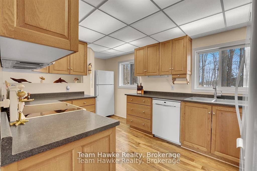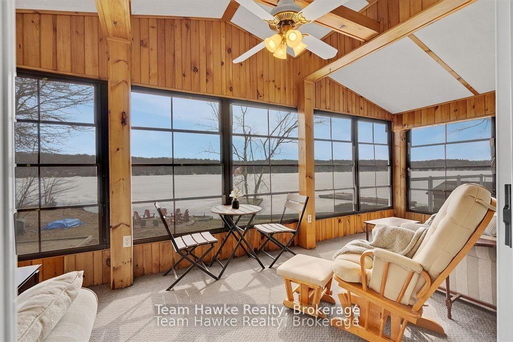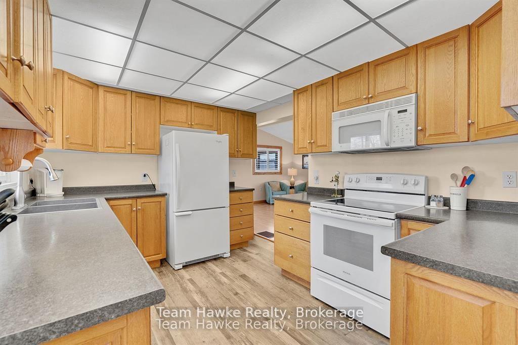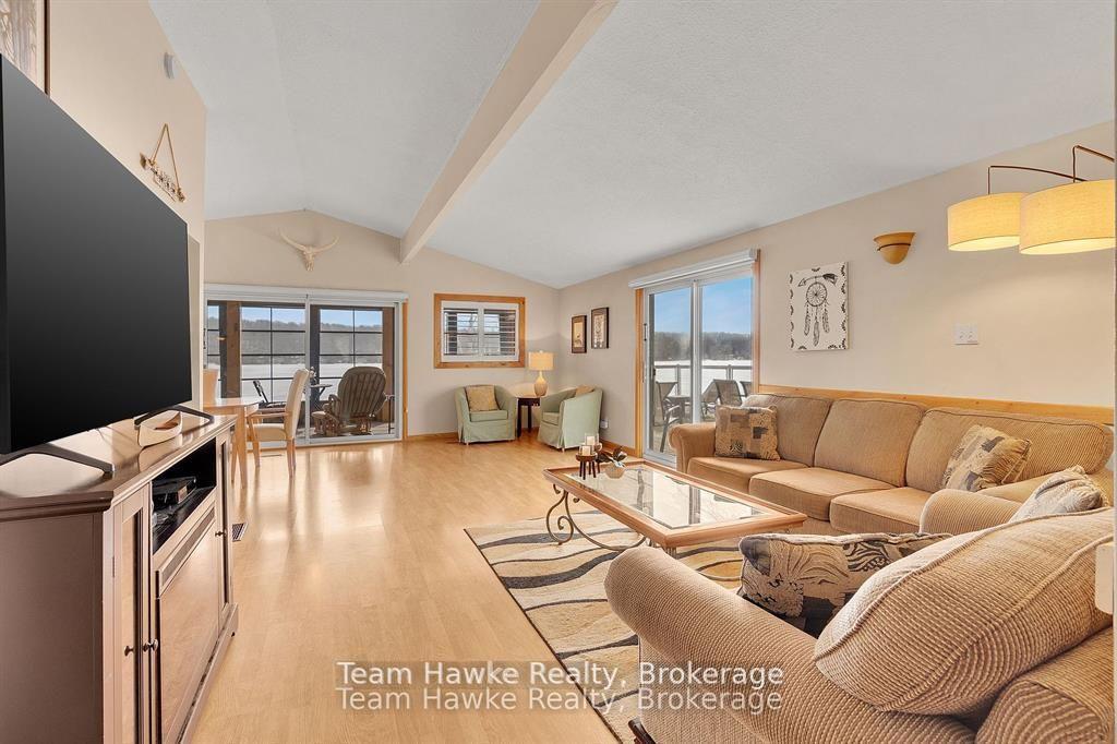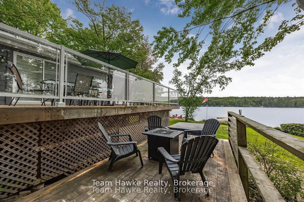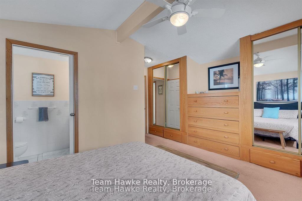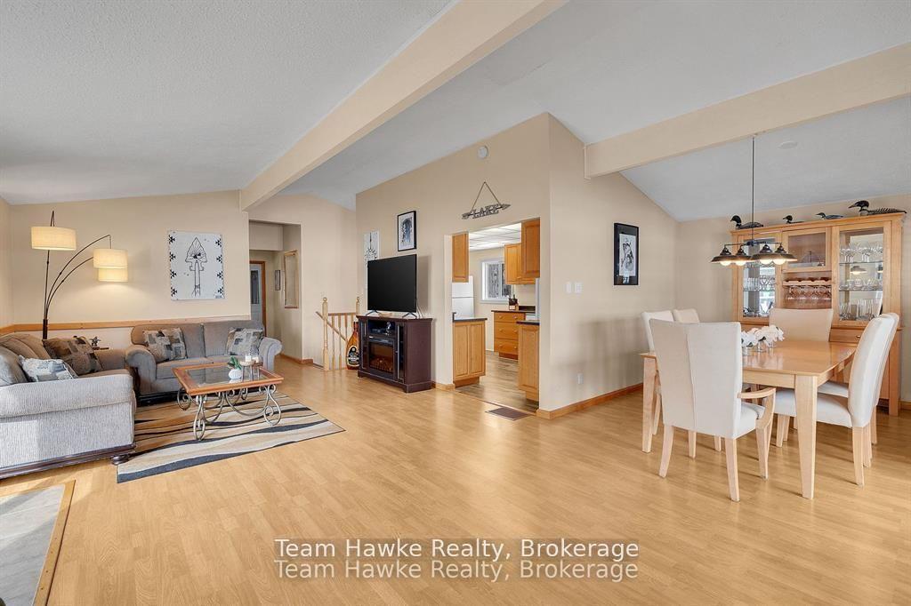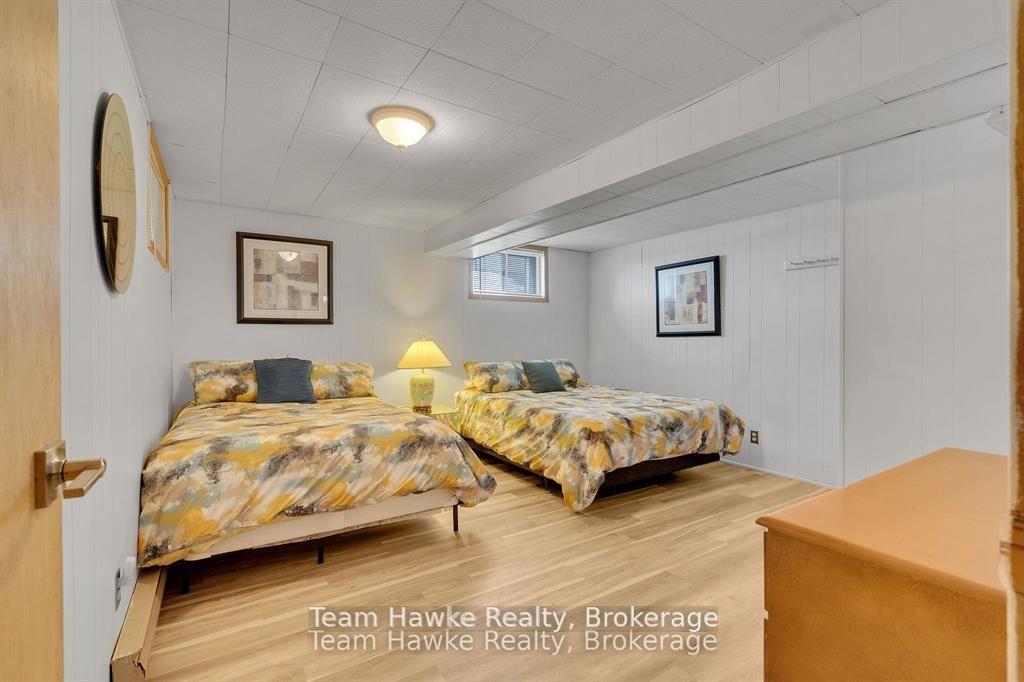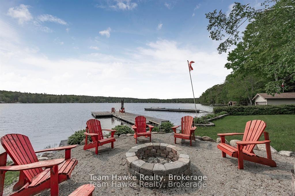 Escape the city and embrace lakeside living! Located 15 minutes from Penetanguishene and under 2 hours from the GTA, this exceptional four-season lakefront home is nestled on a beautifully landscaped 3/4 acre lot with hundreds of feet of private shoreline. The calm, swimmable waters and shallow sandy entry create warmer temperatures that are ideal for families; a highly sought-after feature compared to larger, busier lakes. Offering just under 2,400 square feet of finished living space, this spacious and thoughtfully designed home features 3 bedrooms and 3 bathrooms, perfectly suited for full-time living or a luxury recreational retreat. The main-floor primary suite includes a private ensuite and custom built-in wardrobes, while the open-concept living and dining areas flow seamlessly into an enclosed, lake-facing sunroom with southeastern exposure - the perfect place to enjoy morning light and lake breezes. Sunroom windows can be removed for summer use, with screens remaining in place for convenience. The kitchen offers generous counter space, ample cabinetry, and a built-in dishwasher. The walkout basement features an additional bedroom and two versatile bonus rooms, perfect for guests, a home gym, office, or hobby area, as well as a freshly renovated 2 piece bathroom. Outdoor living here is equally impressive. Relax in the hot tub, gather around the fire pit, or enjoy games on the bocce ball court, or horseshoe pits located on the point. The fully insulated and heated detached double garage (approximately 800 sq ft) is an entertainer's dream, complete with a bar, table games and lounge, making it the ultimate year-round hangout space. Additional highlights include a private dock, large paved driveway, forced-air gas heating, and central air conditioning for year-round comfort. Best of all, this turnkey waterfront property is being sold fully furnished, simply bring your swimsuit and start enjoying lake life from day one.