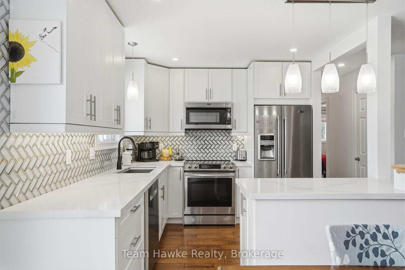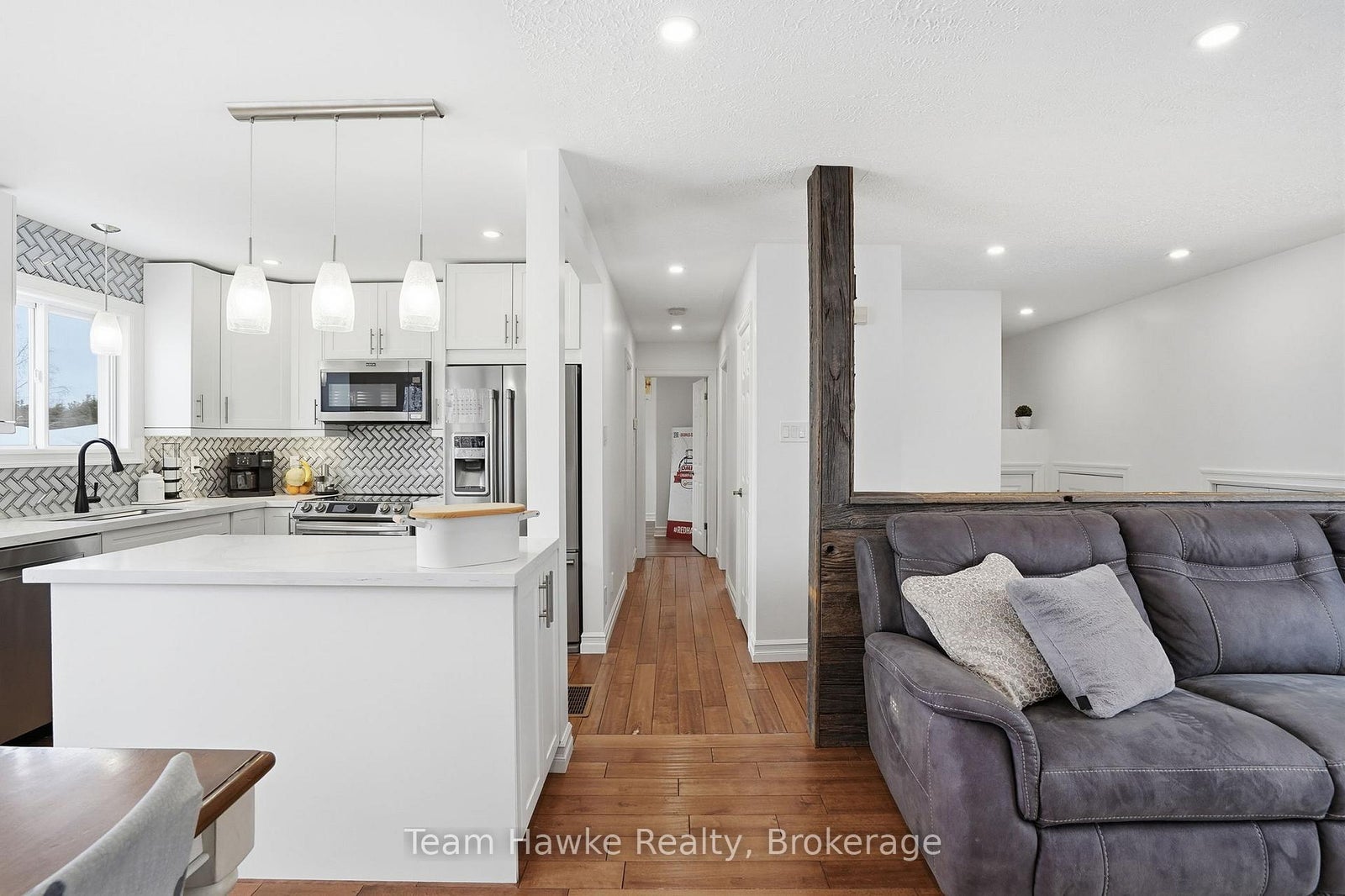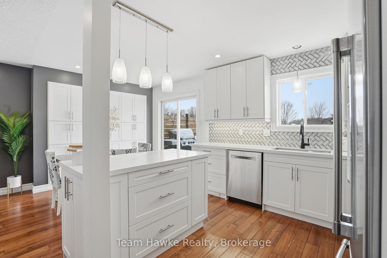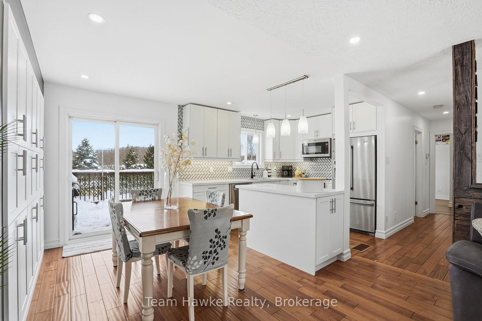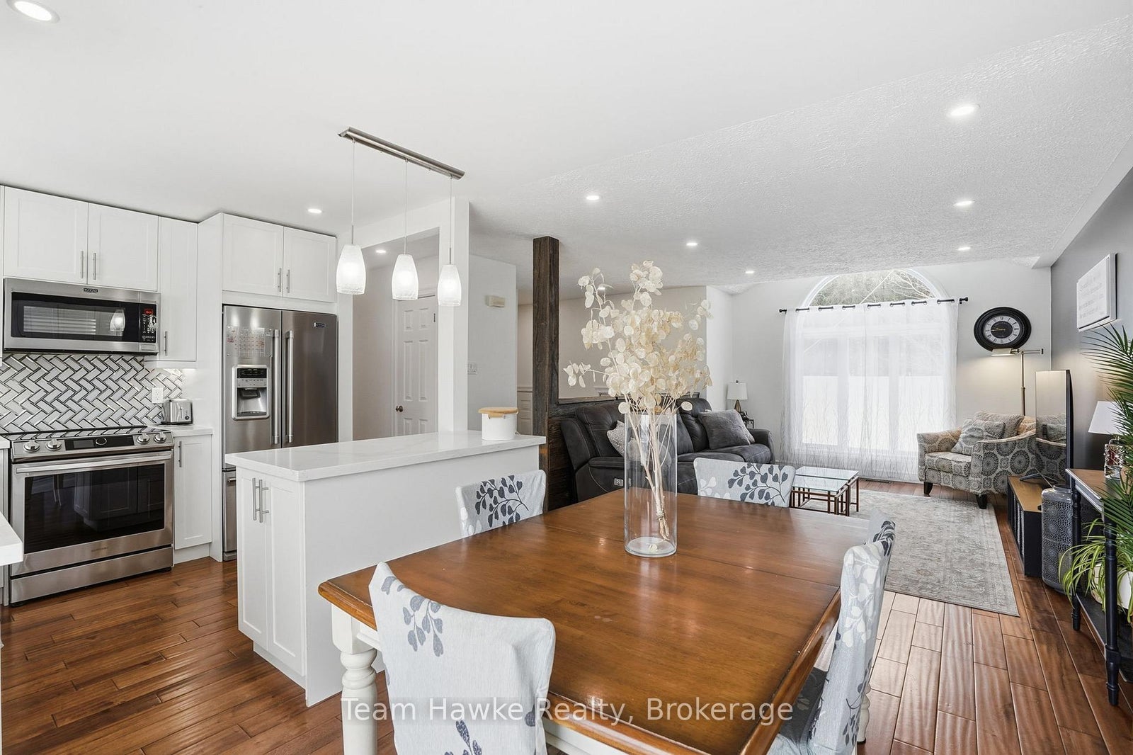 Tucked away on a quiet, family-friendly crescent in Penetanguishene, this beautifully finished raised bungalow delivers space, style, and functionality in all the right ways. Offering 4 bedrooms and 2 full bathrooms, this move-in-ready home is ideal for first time buyers, families, downsizers, or anyone looking for a flexible layout with room to grow. The bright, open-concept main level features a crisp white kitchen with stainless steel appliances, ample cabinetry, and clean modern finishes. The adjoining dining area with extensive built-in storage flows effortlessly into a cozy living room highlighted by a modern accent wall, creating a warm and inviting space for everyday living and entertaining. Step out from the dining room onto a multi-level entertainer's deck, perfect for summer barbecues and hosting. The fully fenced backyard also features a built-in fire pit area, offering a private outdoor setting for relaxing evenings with family and friends. Downstairs, the spacious, fully finished basement includes two generous bedrooms, a second full bathroom, and convenient, accessible laundry, making it ideal for kids, guests, or a home office setup. Out front you have a brand new driveway (October 2025) that offers 6 car parking, a double car garage with interior access that's fully insulated and heated, and loft storage. Set in a desirable residential neighbourhood, across from a forested lot, this home blends modern finishes, thoughtful storage, indoor-outdoor living, and a functional raised bungalow layout-all within a peaceful community setting.