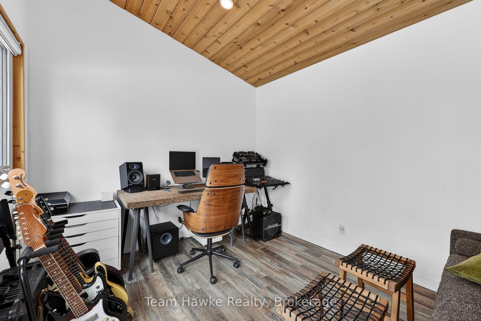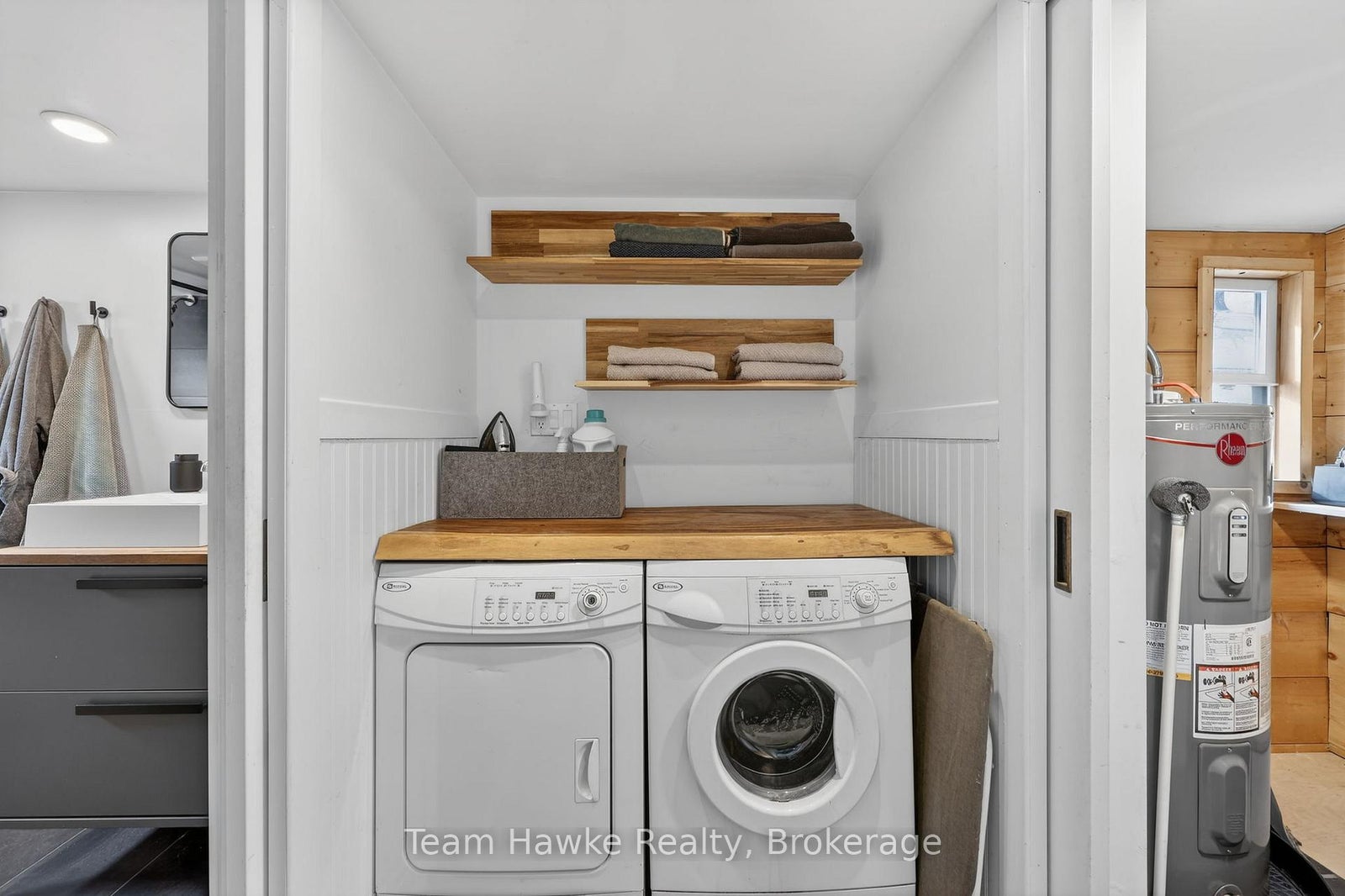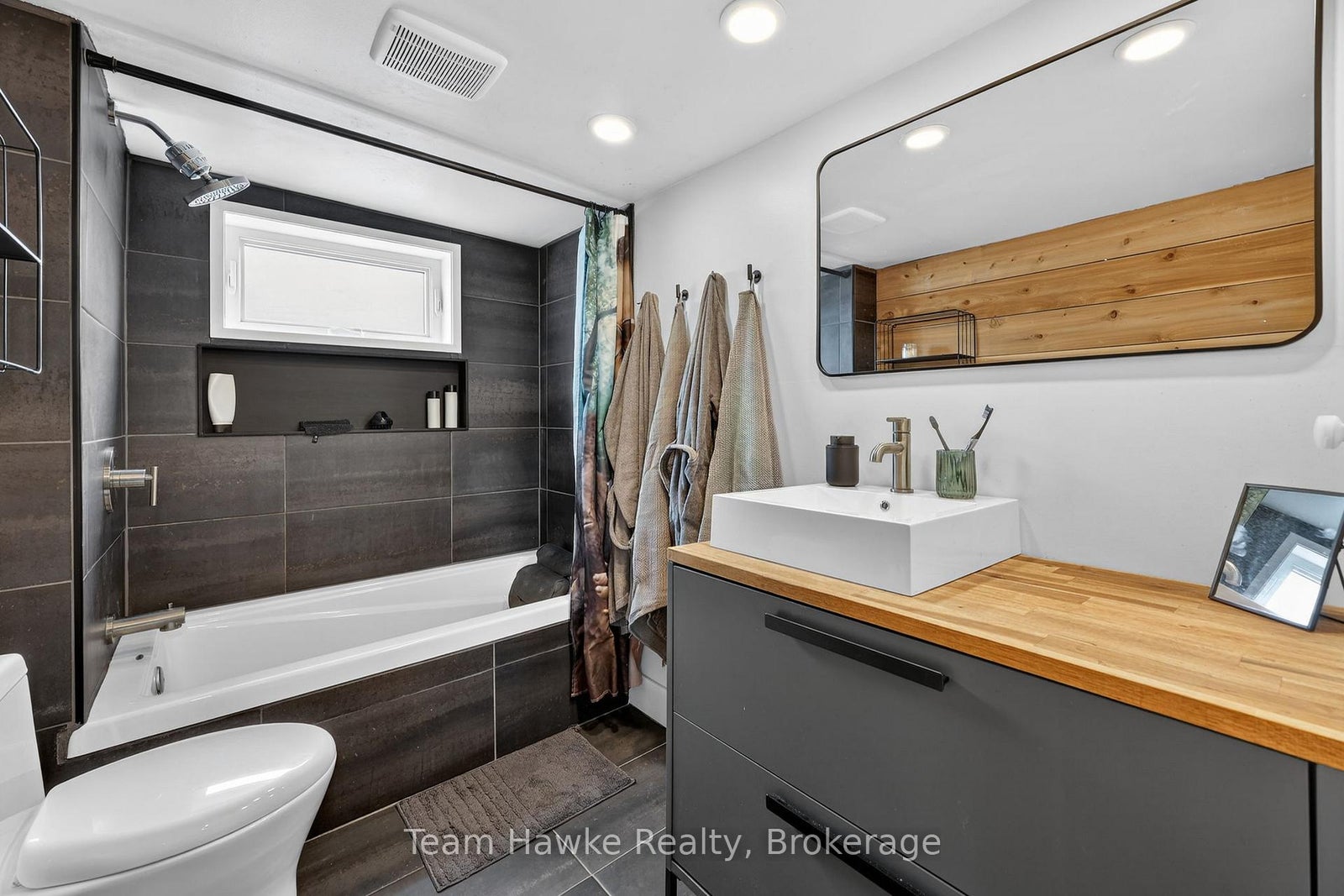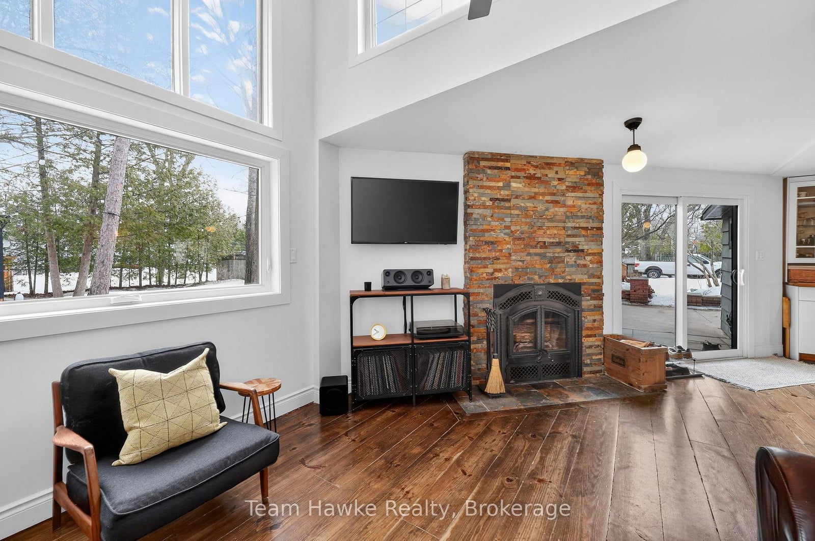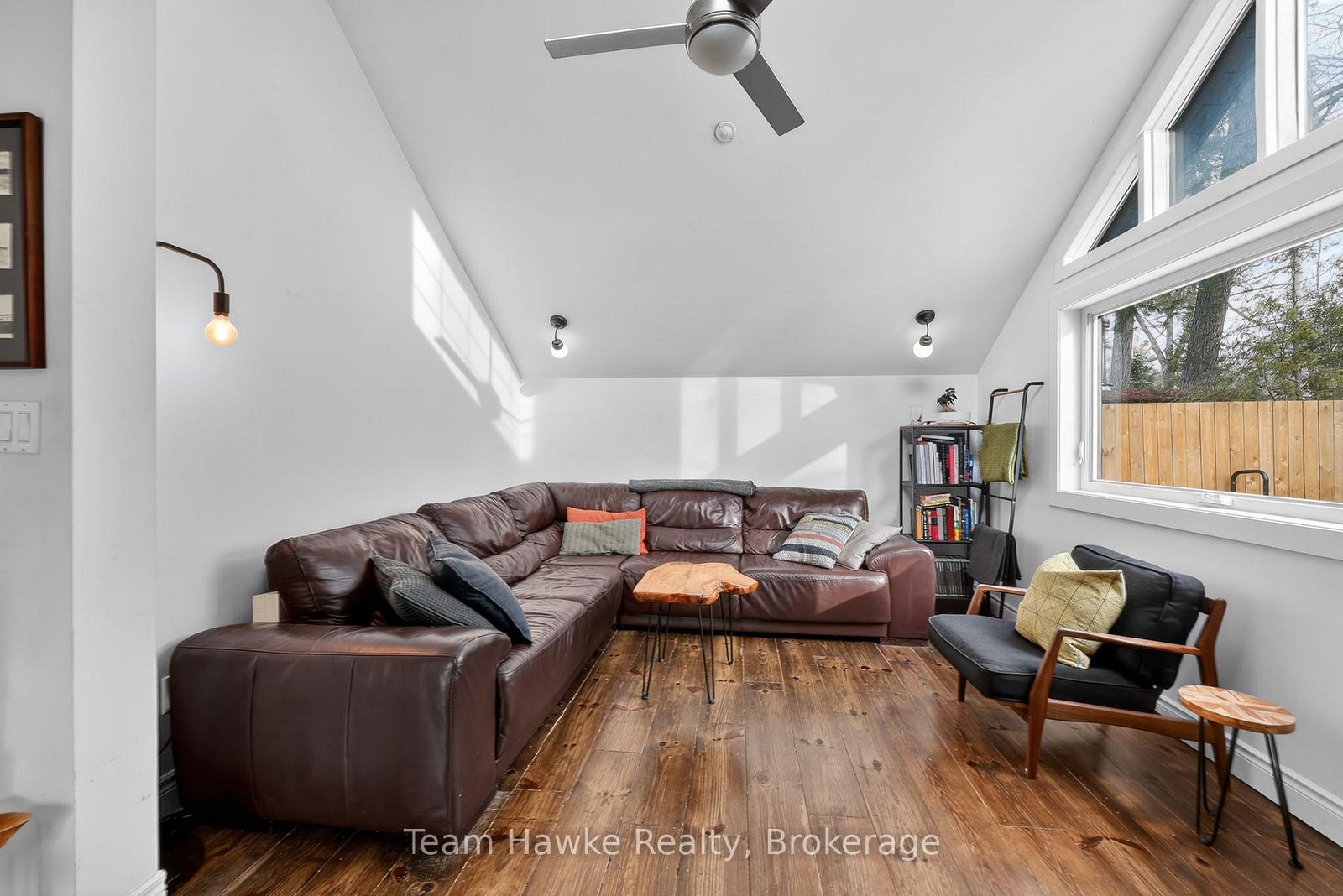 Pride of ownership is evident throughout this charming home or year-round cottage, ideally located in beautiful Tiny Township. Just 350 metres from the popular Jackson Point Beach, this property offers comfort and convenience, with multiple access points to Tiny's stunning shoreline within walking distance. Thoughtfully designed, the home features two bedrooms plus a loft, a renovated bathroom, and a functional single level layout. The main floor includes two spacious bedrooms, laundry, and an open-concept living area with vaulted ceilings and abundant natural light. The kitchen offers ample cabinetry and counter space, stainless steel appliances, and an additional bar or coffee station. Additional highlights include a 120 sq ft bunkie - perfect for guests or extra home office space, as well as a garage. The home, bunkie, and garage are all equipped with energy-efficient electric mini-splits for both heating and cooling. The garage is exceptionally clean and well maintained, making it a perfect workshop or hobby studio. Step outside to enjoy a beautifully maintained yard featuring recently updated privacy fencing, a new garden shed, and extensive patio space - ideal for both entertaining or relaxing. With a nearby boat launch and the inviting shores of Tiny Beaches, this is a perfect summer getaway or year round piece of paradise.