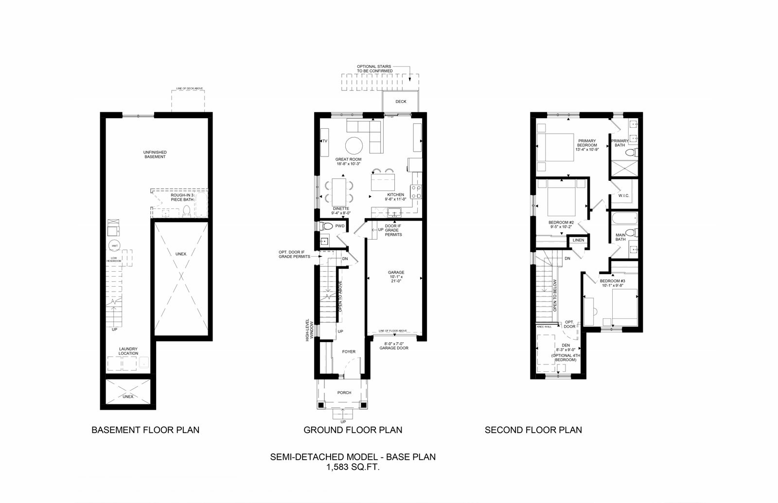 1,583 sq. ft. | 3 Bed + Den or 4 Bedrooms | 2.5 or 3.5 Baths | Attached Single-Car Garage | Two-Storey | Available in two exterior colours